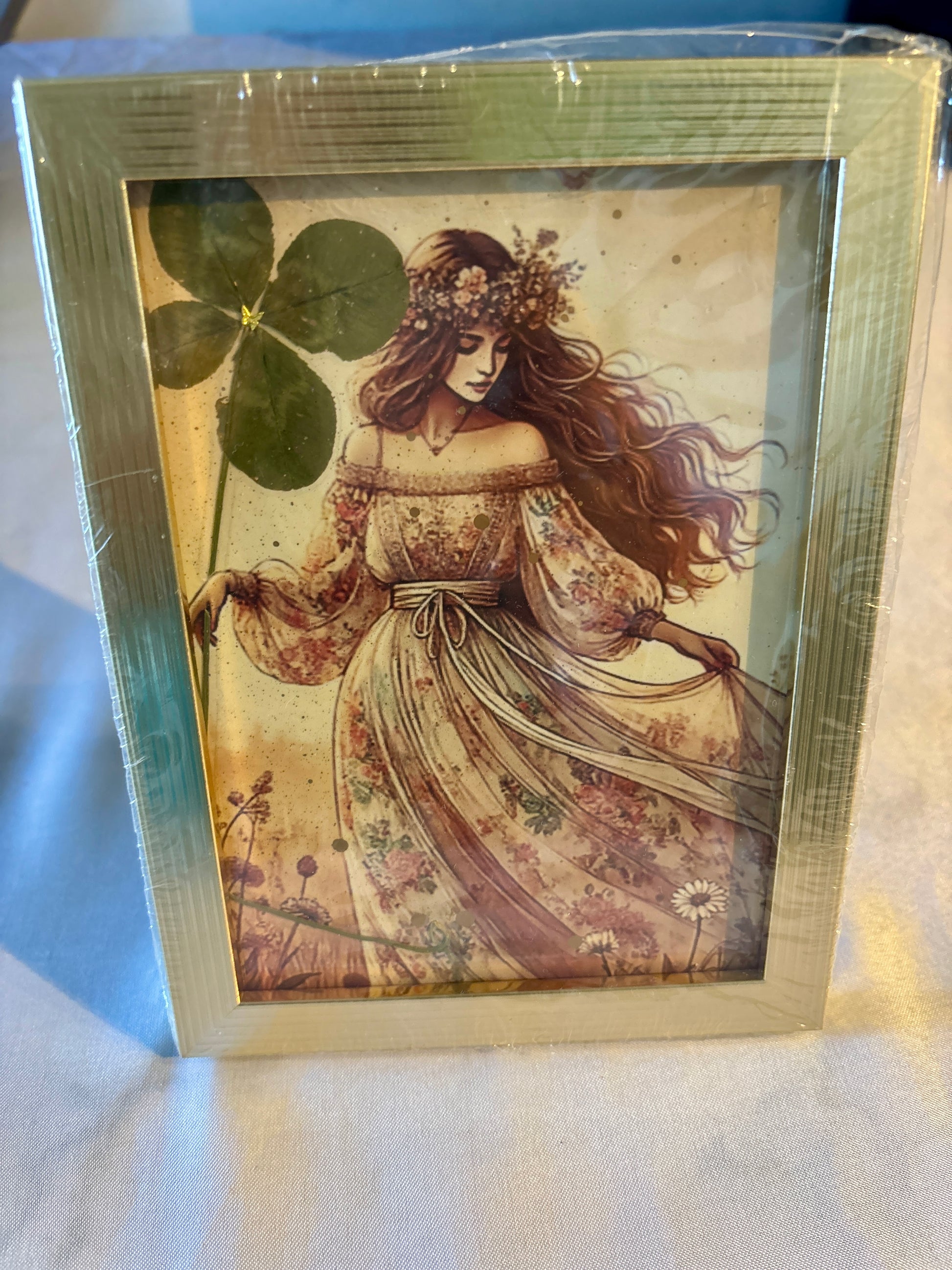 cadre trèfle à quatre / feuilles /format A5/ femme bohème