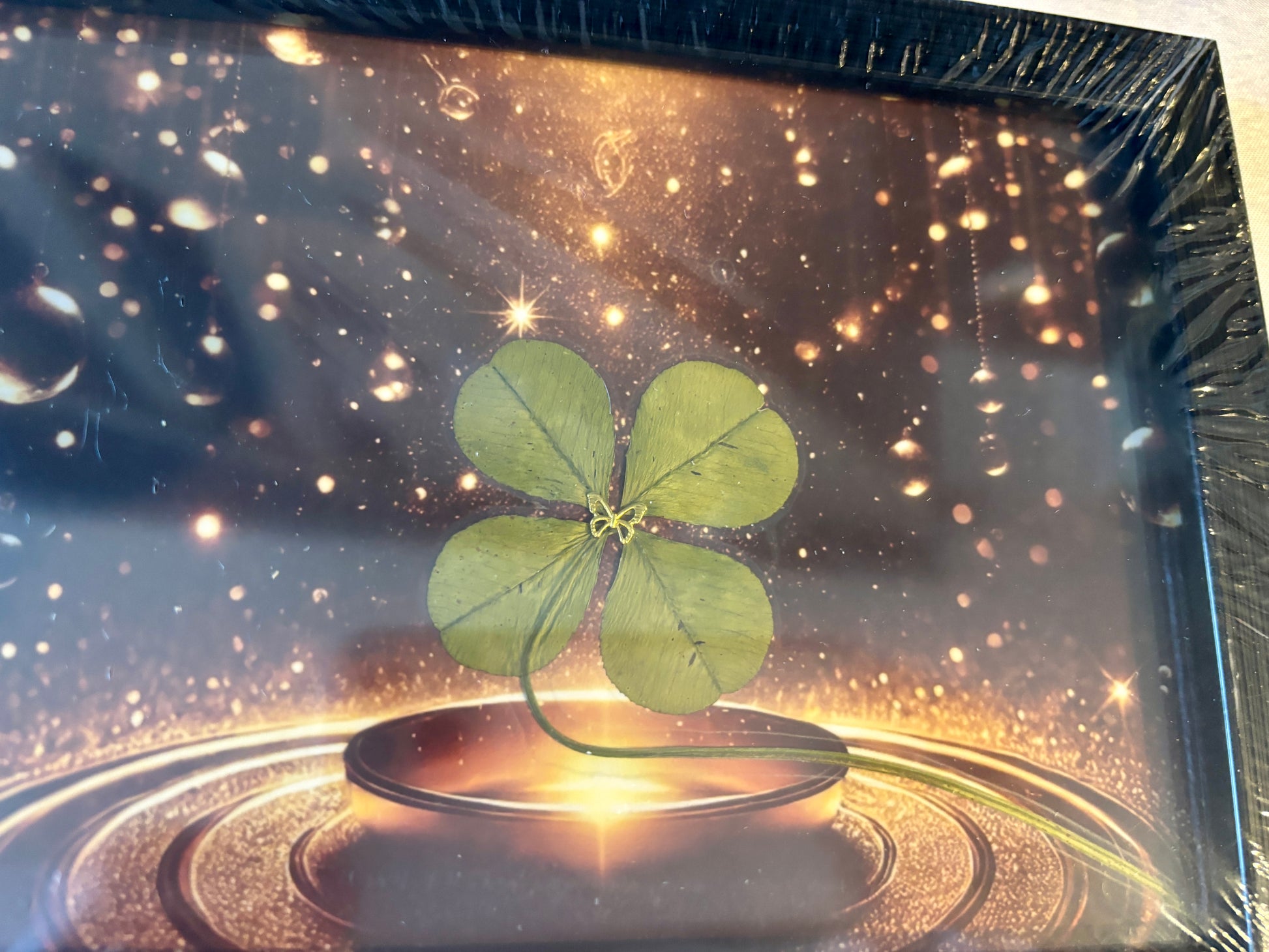 Cadres porte-bonheur avec véritable trèfle à 4 feuilles