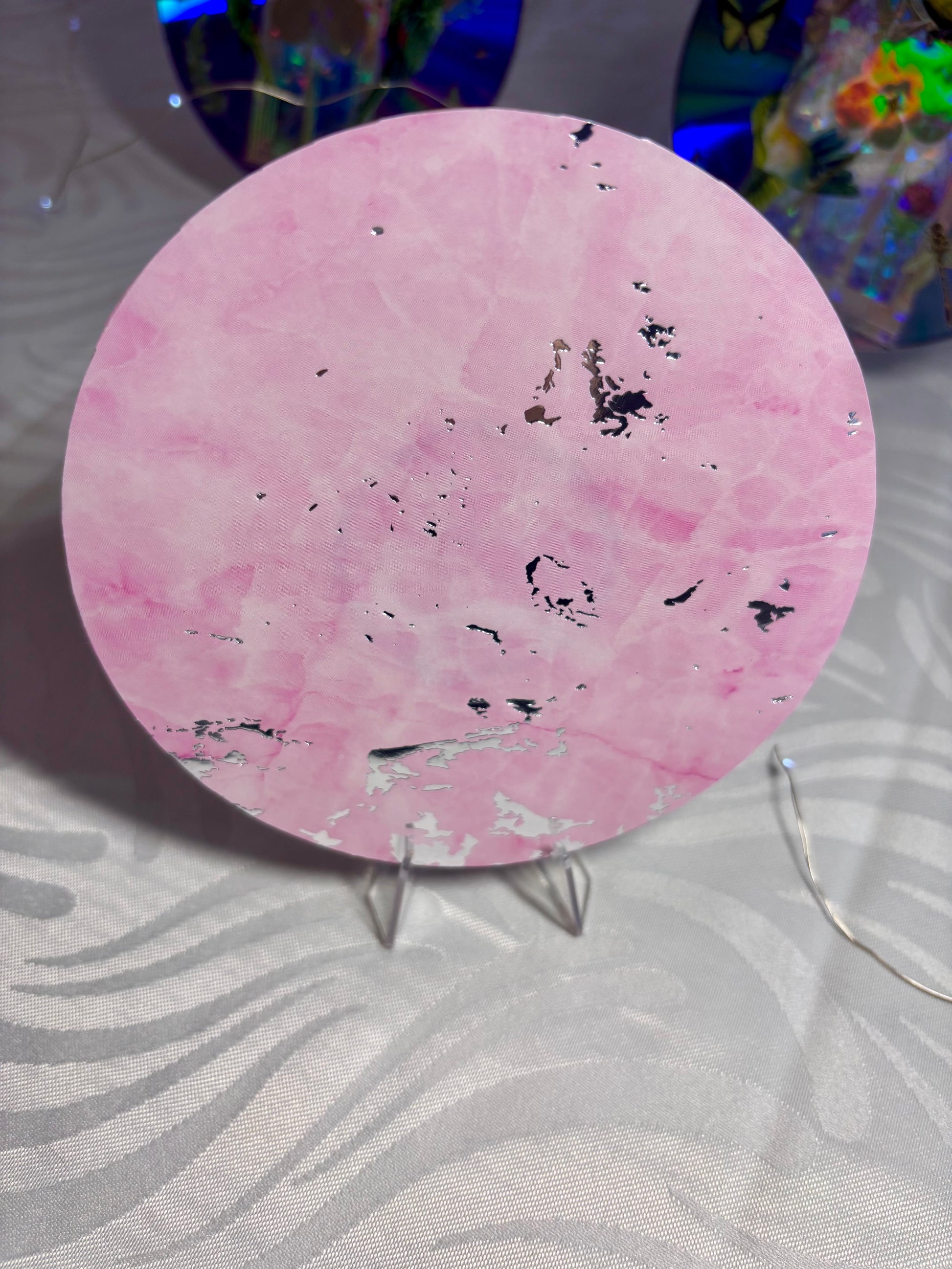 Chaque pièce est une création unique, née du recyclage d’un CD usagé transformé en support d’énergie positive.