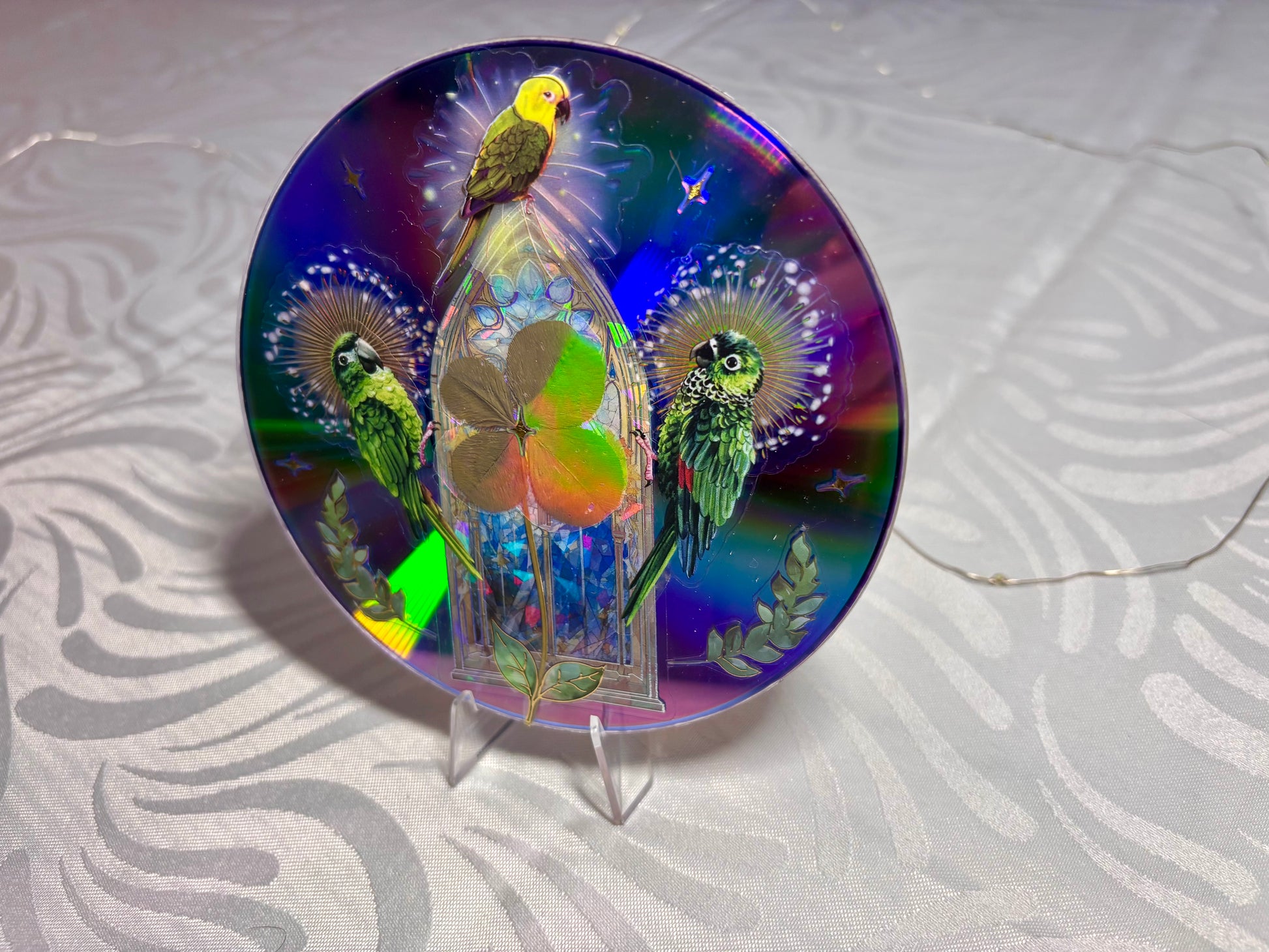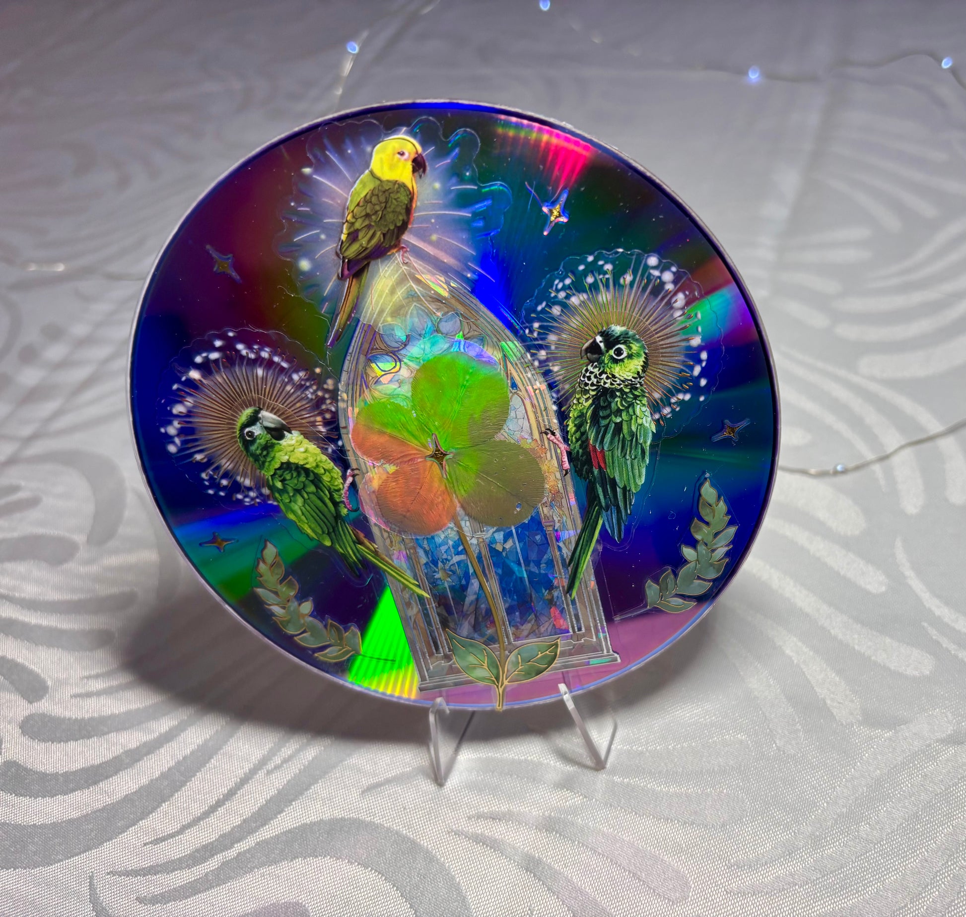 Chaque pièce est une création unique, née du recyclage d’un CD usagé transformé en support d’énergie positive.