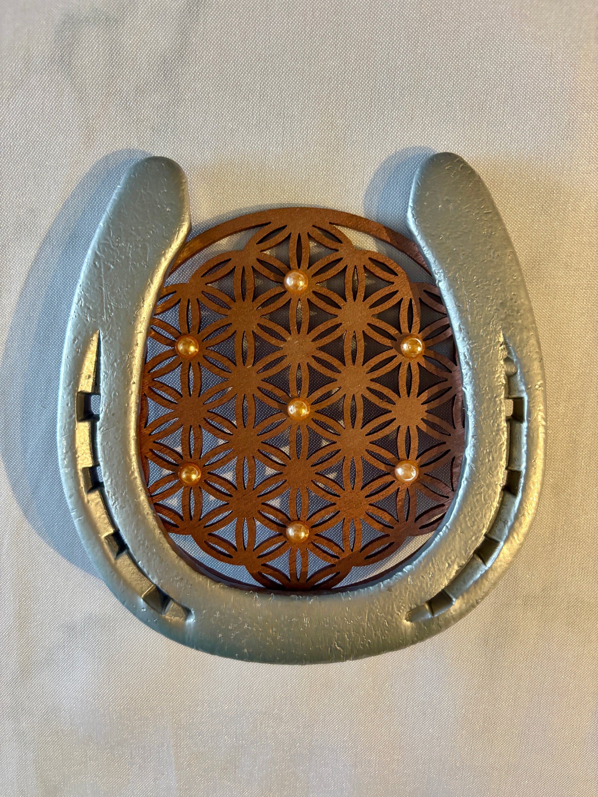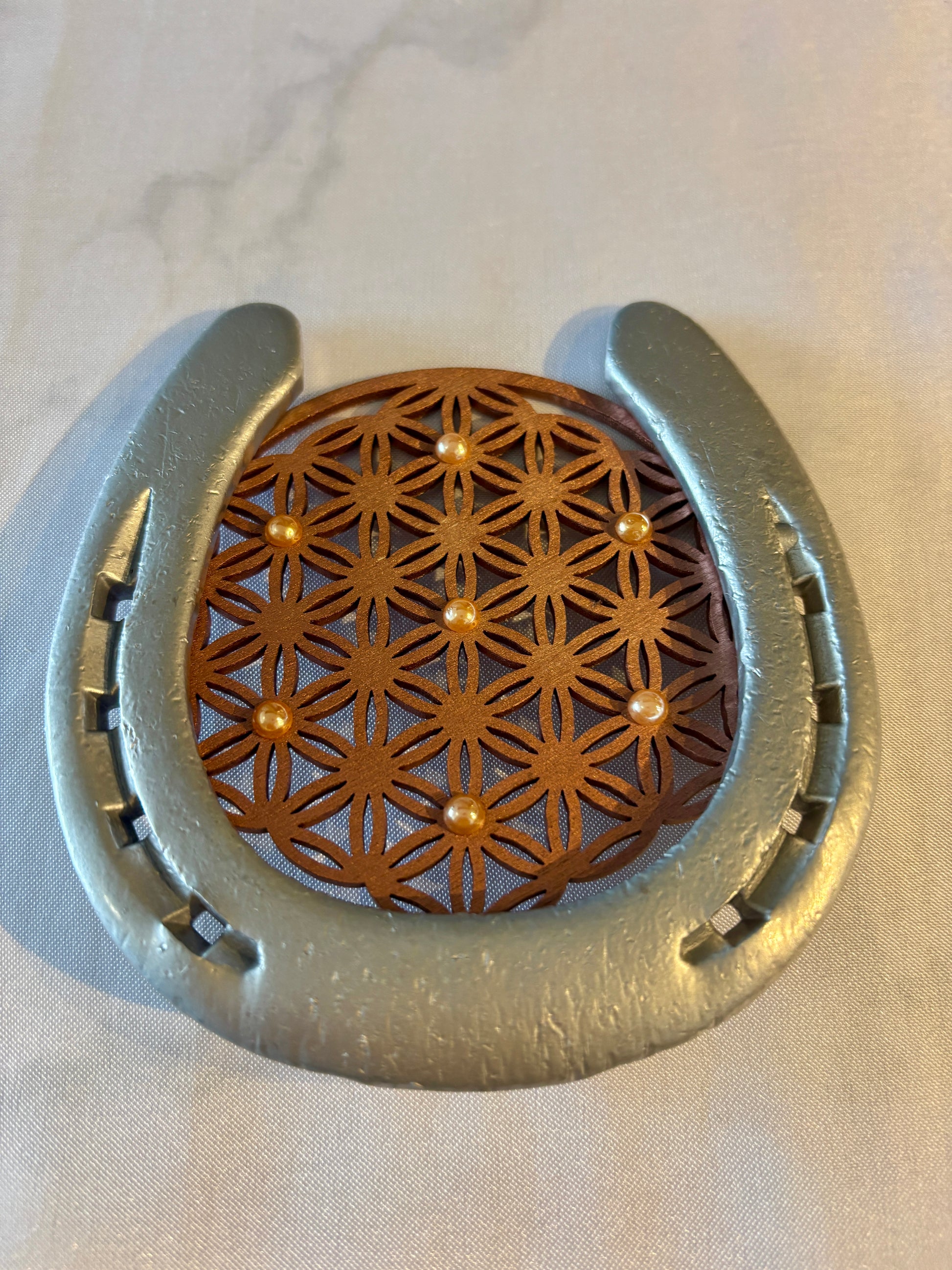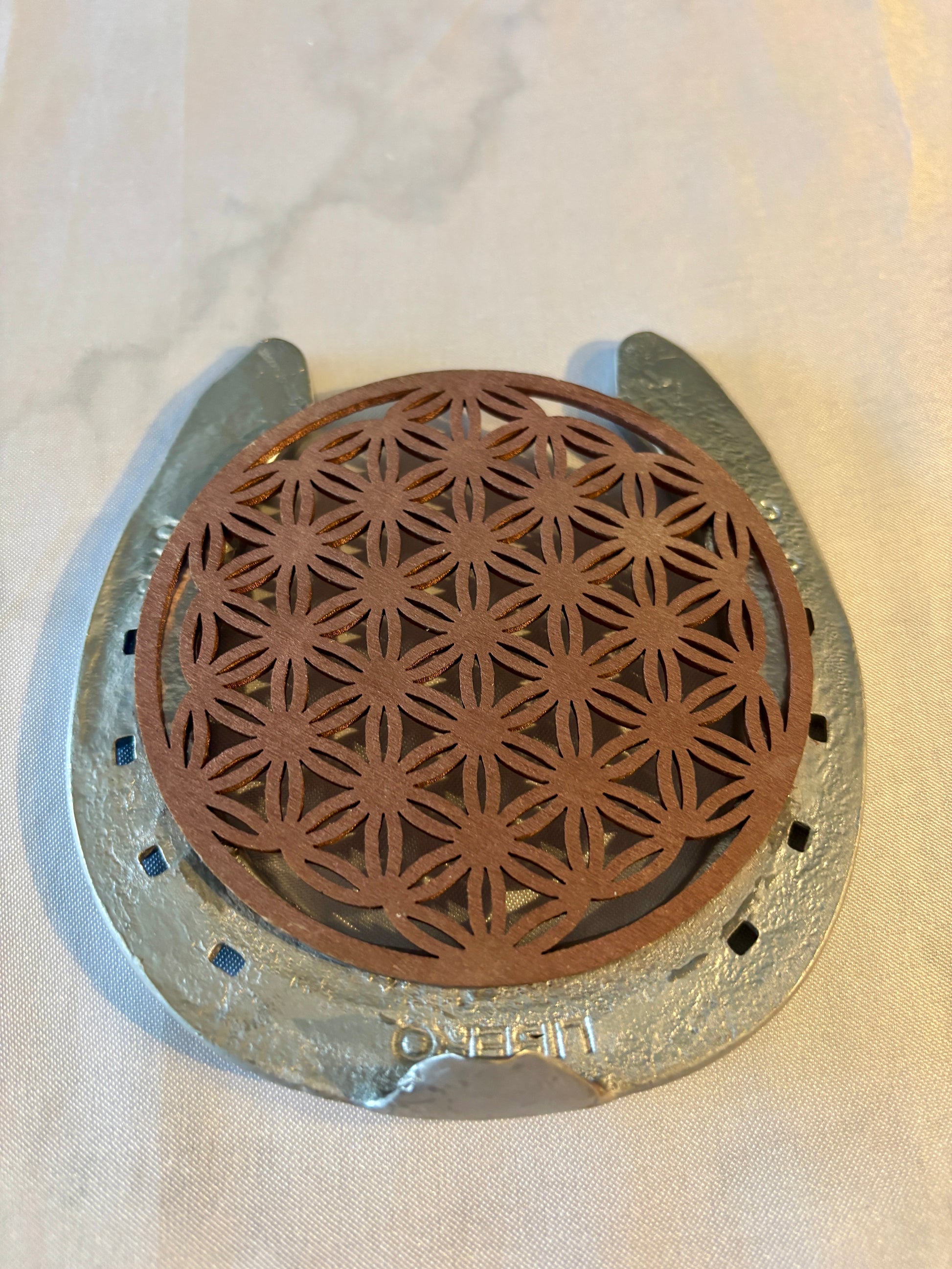 fer à cheval avec son symbole : La fleur de vie