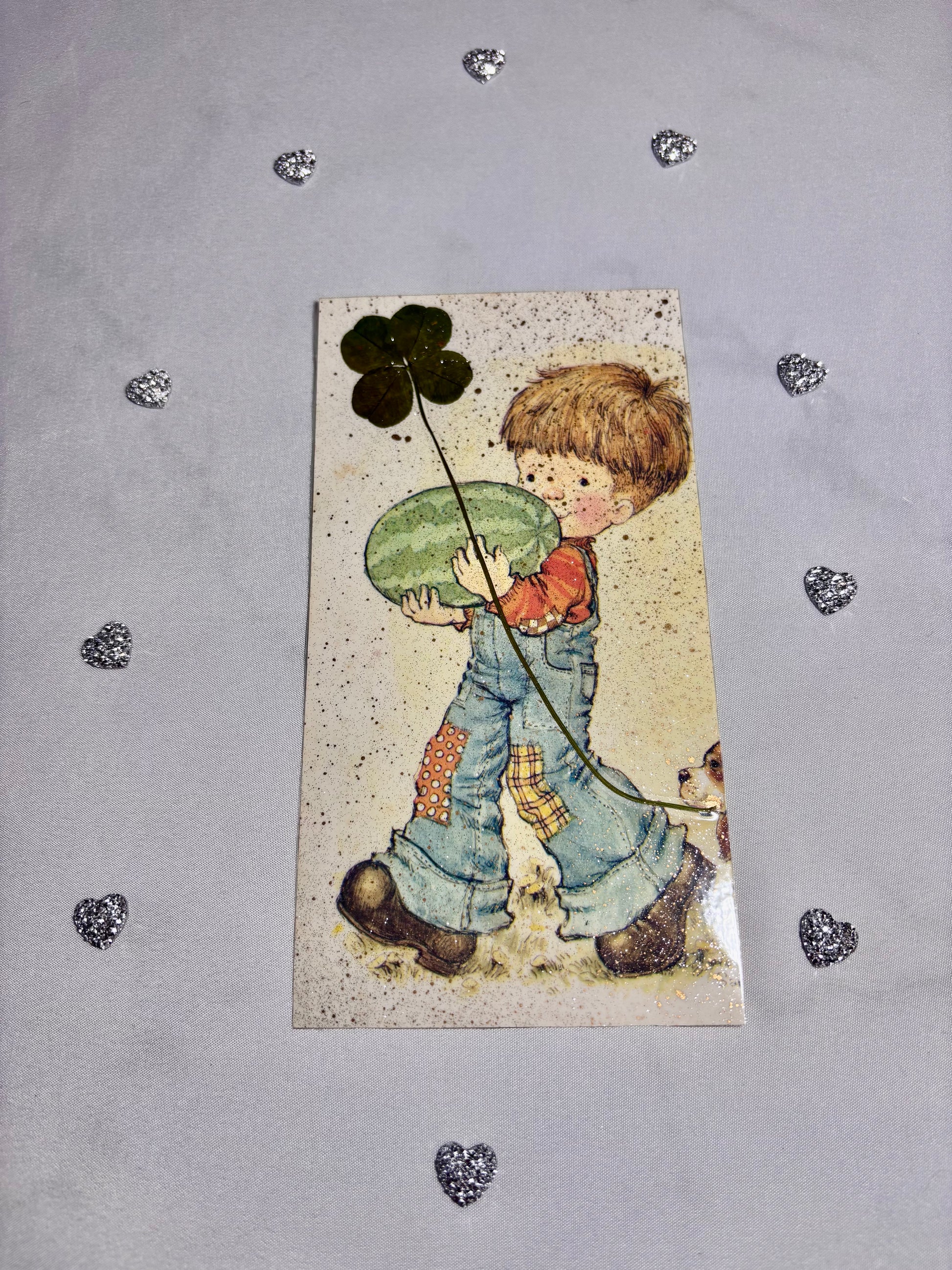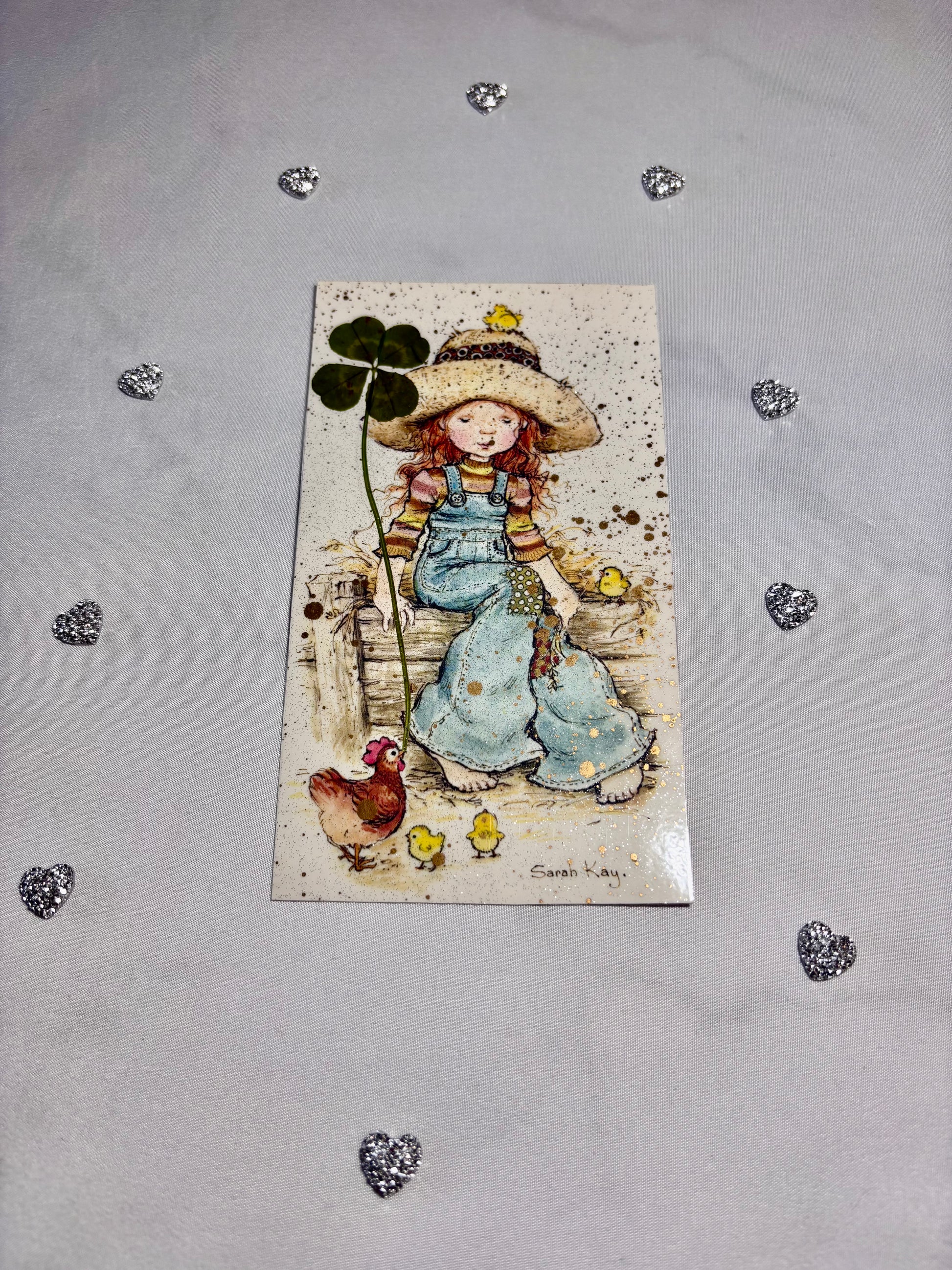 marque page vintage Sarah kay et son trèfle à 4 feuilles