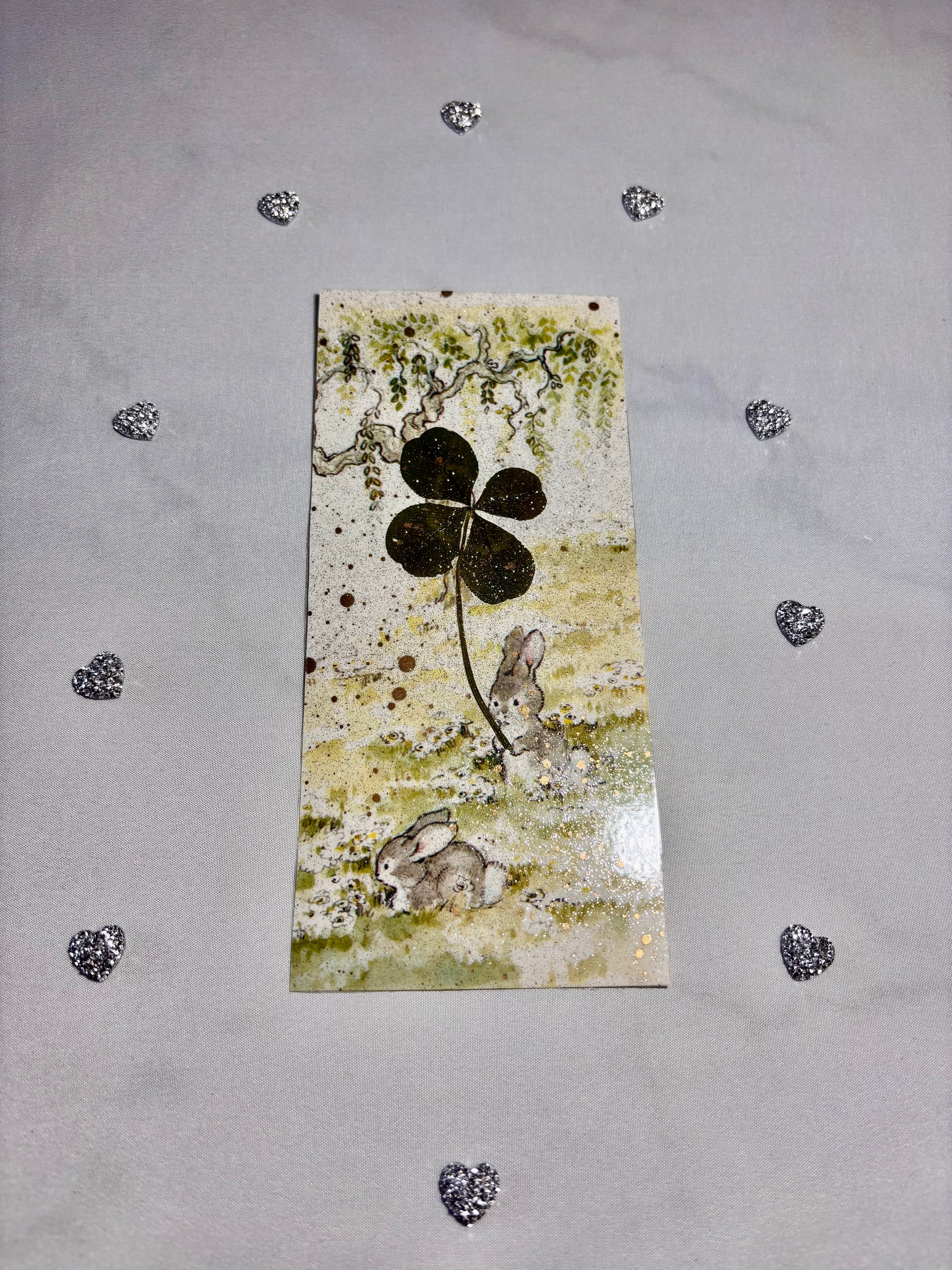 ✨ Chaque modèle est décoré avec tendresse et orné d’un véritable trèfle à 4 feuilles séché, symbole de chance, d’amour, de foi et d’espoir.