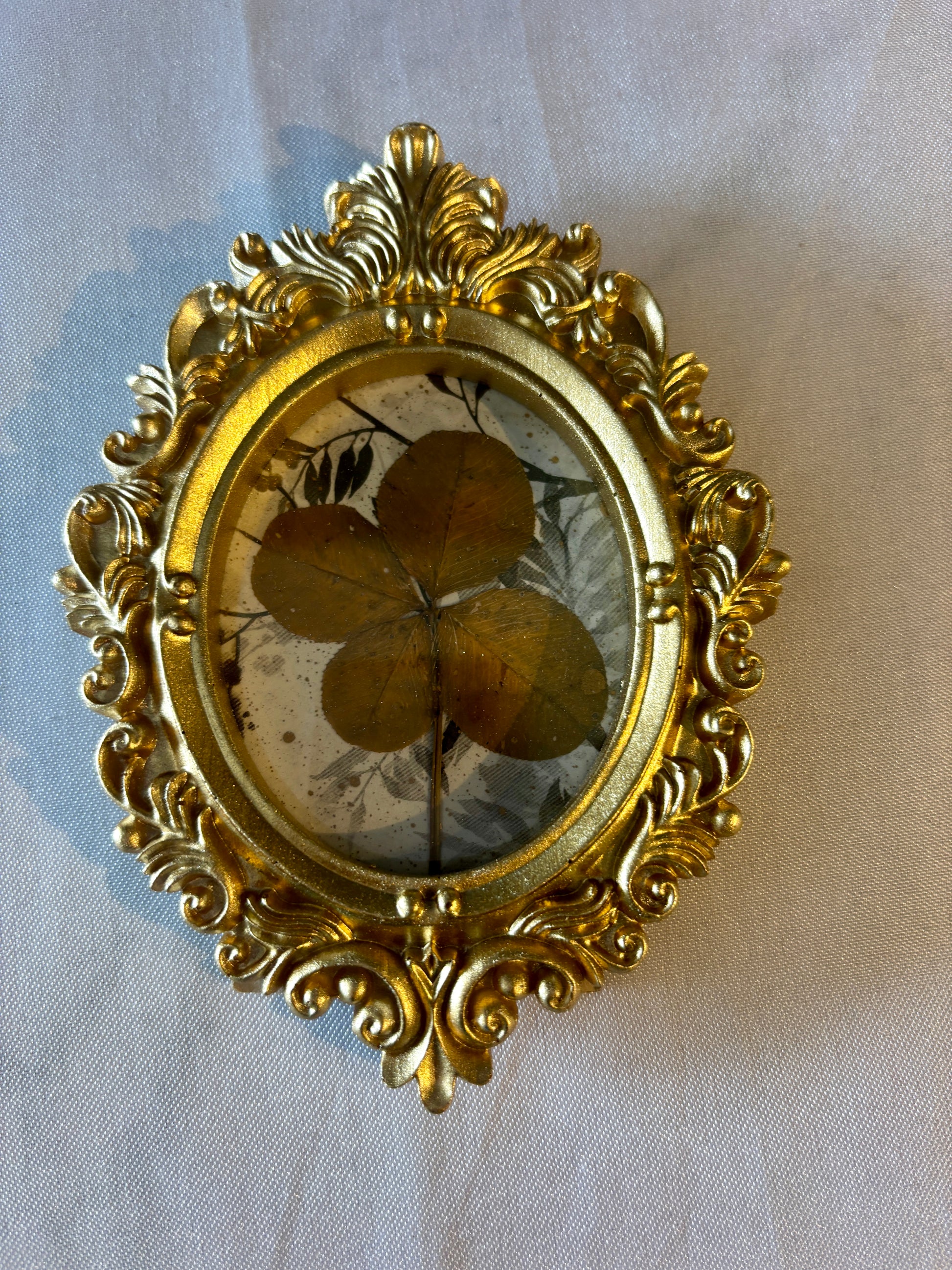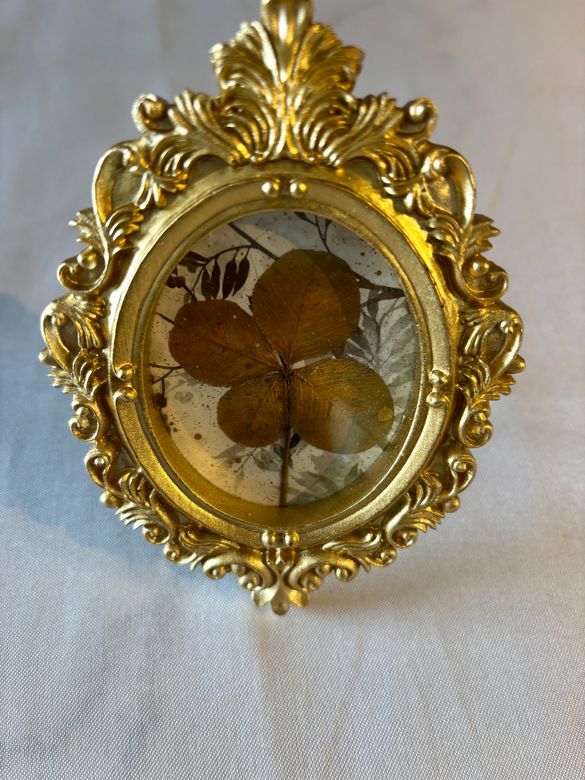 Petit cadre vintage – Véritable trèfle à 4 feuilles ( un des premiers trèfle trouver )